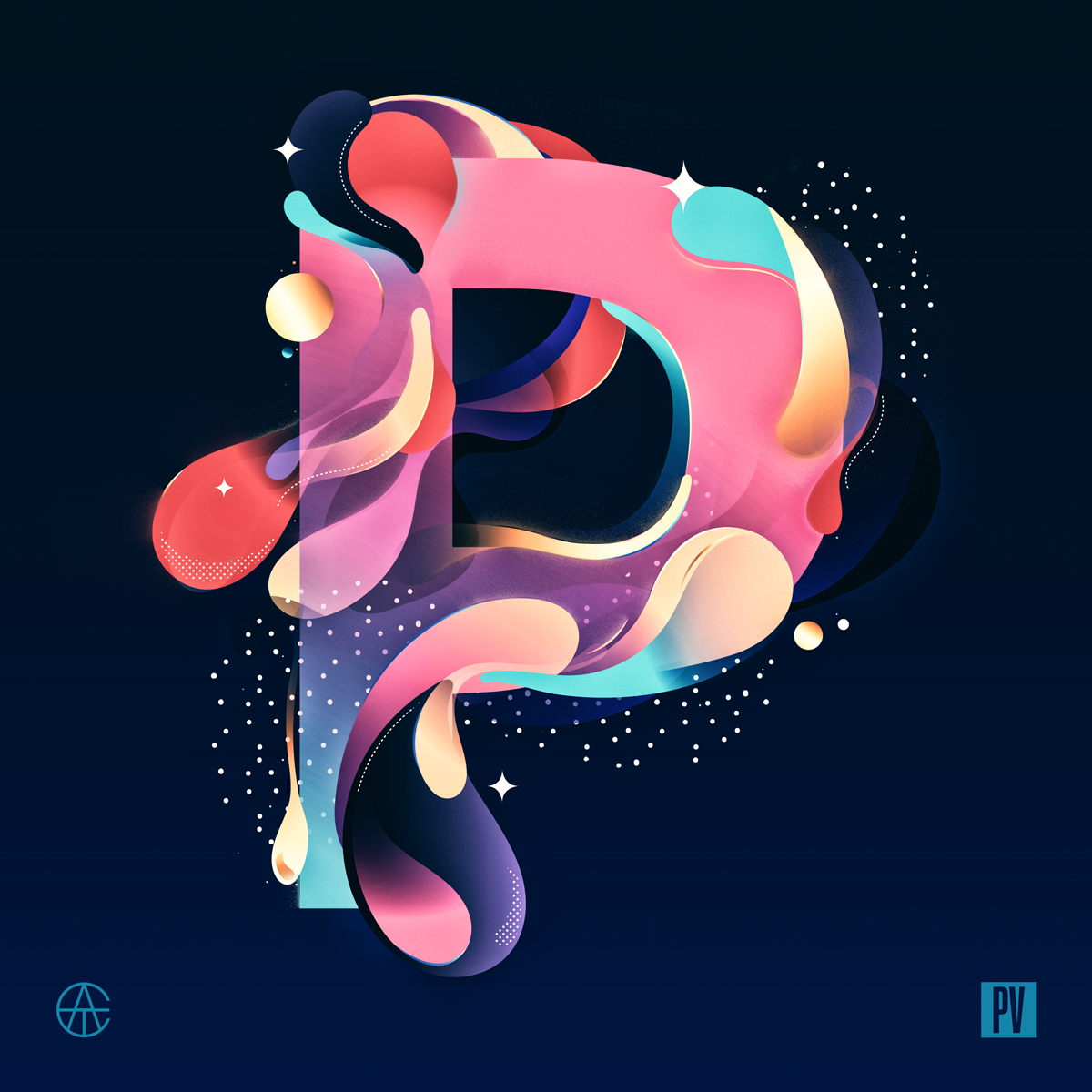 I was invited to participate in the second Artist Series run by Avondale Type Co. For this series I was given the option of selecting a font that they created, and creating illustrated versions of my initials, one special character, and their logo. Visually I chose to work with flows that would interact with the letters and curves.