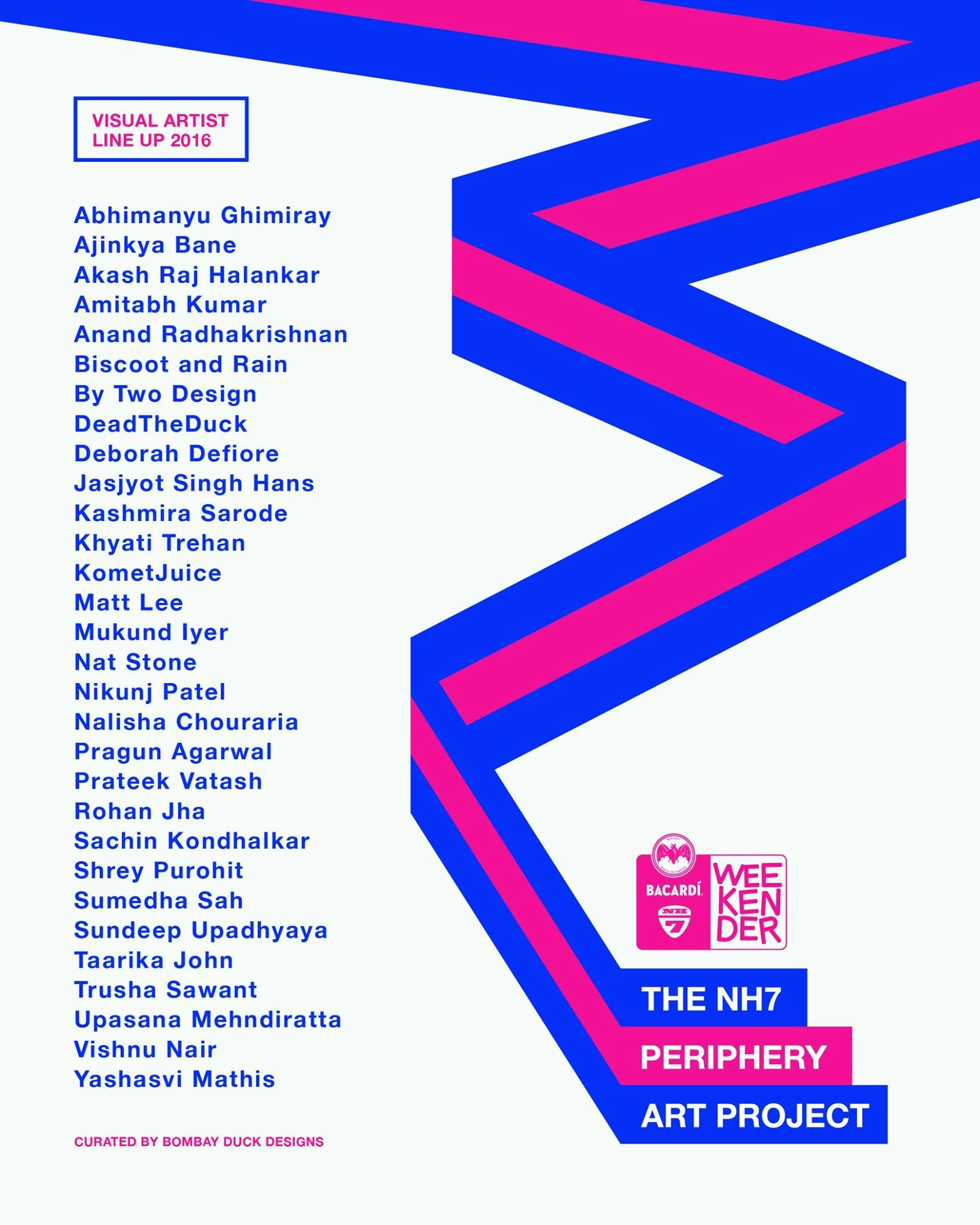 The NH7 Periphery Art Project was a traveling exhibit, where the artists' work was displayed across the periphery of the 2016 NH7 Music Festival Venues in India.